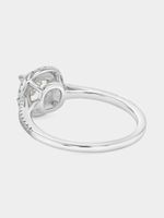 Elegant silver diamond halo ring with created sapphire accents. Classic and timeless design suitable for any occasion. Made from high-quality materials for lasting durability. The perfect accessory to elevate any look.