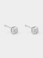 Expertly crafted in Sterling Silver, these elegant stud earrings feature cushion-cut Cubic Zirconia in bezel settings.