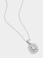 Expertly crafted in Sterling Silver, this beautiful pendant on a chain features a cushion-cut Cubic Zirconia in a double halo setting.