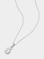 Expertly crafted in Sterling Silver, this elegant pendant on a chain features a duo of round-cut Cubic Zirconia solitaires.