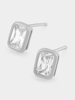 Expertly crafted in Sterling silver, these beautiful stud earrings feature emerald-cut Cubic Zirconia in bezel settings.