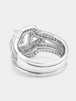 Expertly crafted in Sterling Silver, this magnificent triple set ring features an emerald-cut Cubic Zirconia embraced by round-cut stones and intricately beaded bands glittering with pavé set stones.