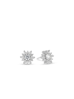 Expertly crafted in Sterling Silver, these pretty stud earrings feature round-cut Cubic Zirconia solitaires in a petal-inspired halo setting of fine-cut stones.