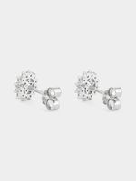 Expertly crafted in Gold Plated Sterling Silver, these radiant stud earrings feature a bloom-inspired cluster of round-cut Cubic Zirconia in a halo setting.