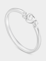 Expertly crafted in Sterling Silver, this romantic ring features a heart-cut Cubic Zirconia in a bezel setting embraced by round-cut stones.