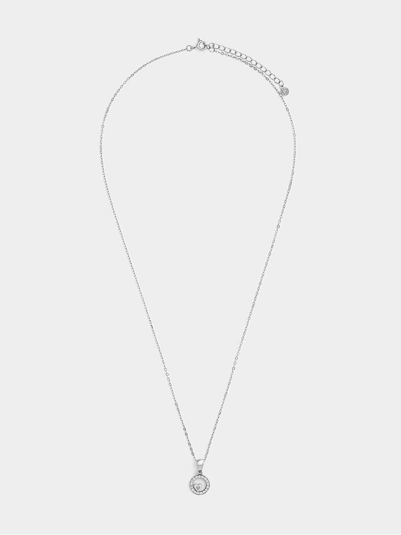 Expertly crafted in Sterling Silver, this romantic heart in circle pendant on a chain catches the light with pavé set Cubic Zirconia.