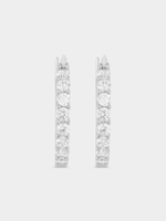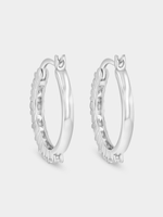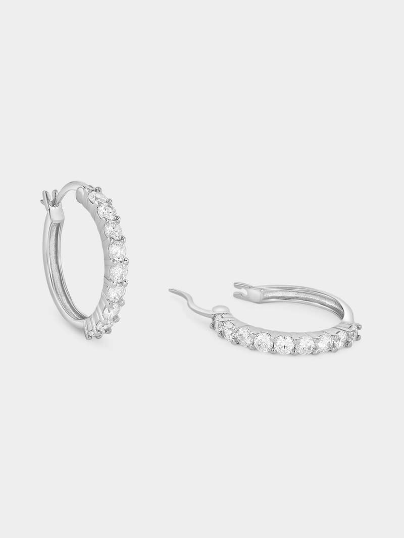 Expertly crafted in Sterling Silver, these classic 15mm hoop earrings catch the light with round-cut Cubic Zirconia.