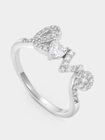 Expertly crafted in Sterling Silver, this romantic “love” script ring features a heart-cut Cubic Zirconia and glitters with pavé set stones.