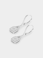 Expertly crafted in Sterling Silver, these elegant drop earrings feature cushion-shaped clusters of round-cut Cubic Zirconia in halo settings enhanced by pavé set stones.