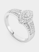 Expertly crafted in Sterling Silver, this beautiful ring features a marquise-shaped cluster of round-cut Cubic Zirconia in a double halo setting and a band glittering with pavé set stones
