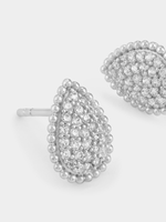 Expertly crafted in Sterling Silver, these beautiful pear-shaped stud earrings glitter with pavé set Cubic Zirconia.