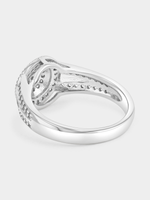 Expertly crafted in Sterling Silver, this beautiful ring features a cluster of round-cut Cubic Zirconia in a halo setting and a split-shank band glittering with pavé set stones