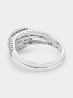 Expertly crafted in Sterling Silver, this elegant twinset ring features a cluster of round-cut Cubic Zirconia in a halo setting and bands sparkling with pavé set stones.