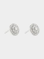 Expertly crafted in Sterling Silver, these radiant 8mm round stud earrings feature a cluster of round-cut Cubic Zirconia embraced by a halo of pave set stones.