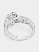 Expertly crafted in Sterling Silver, this opulent ring features an oval-cut Cubic Zirconia in a double halo setting and a split-shank band glittering with pavé set stones.