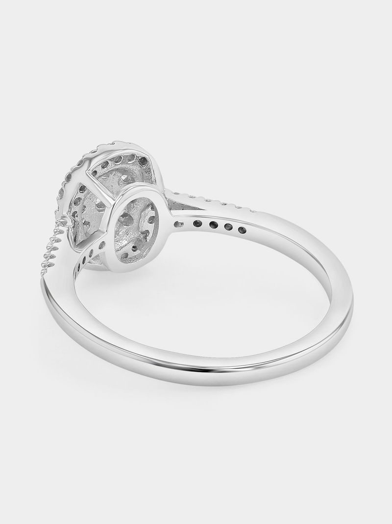 Expertly crafted in Sterling Silver, this alluring ring features an oval cluster of round-cut Cubic Zirconia in a halo setting and a band sparkling with pavé set stones.