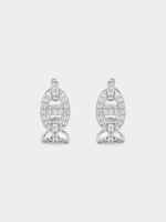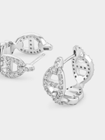 Expertly crafted in Sterling Silver, these bold anchor link hoop earrings glitter with pavé set Cubic Zirconia.
