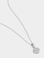 Expertly crafted in Sterling Silver, this elegant clover pendant on a chain glitters with pavé set Cubic Zirconia.