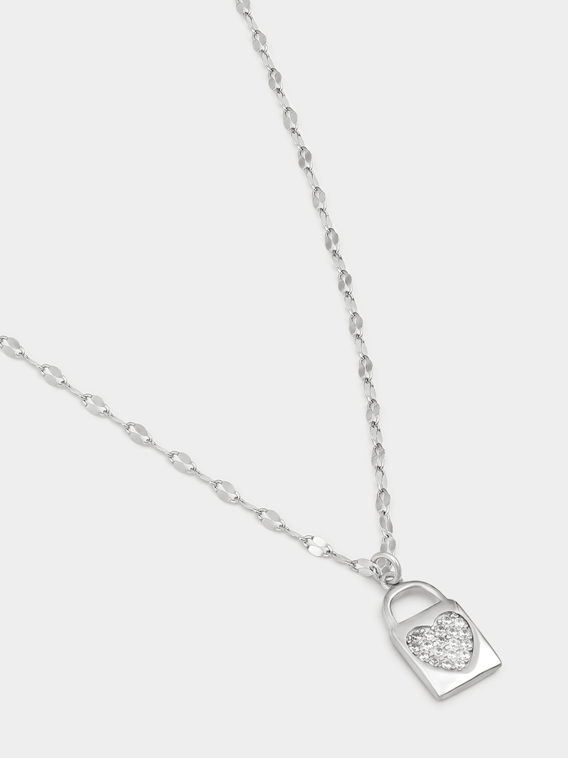 Expertly crafted in Sterling Silver, this romantic heart lock pendant on a chain glitters with pavé set Cubic Zirconia.
