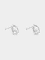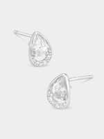 Expertly crafted in Sterling Silver, these beautiful stud earrings feature pear-cut Cubic Zirconia in half halo settings.