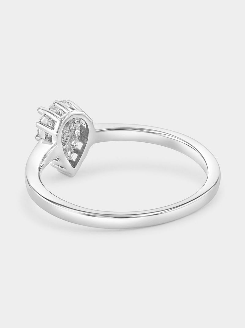 Expertly crafted in Sterling Silver, this beautiful ring features a pear-cut Cubic Zirconia embraced by a halo of pavé set stones.