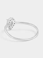 Expertly crafted in Sterling Silver, this beautiful ring features a pear-cut Cubic Zirconia in a halo setting.
