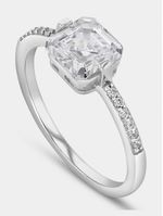 Expertly crafted in Sterling Silver, this regal ring features a princess-cut Cubic Zirconia solitaire and a band sparkling with pavé set round-cut stones.