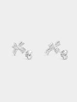 Expertly crafted in Sterling Silver, these pretty ribbon stud earrings glitter with pavé set Cubic Zirconia.