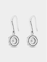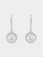 Expertly crafted in Sterling Silver, these radiant drop earrings feature round-cut Cubic Zirconia embraced by a halo of pavé set stones.