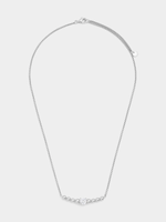 Expertly crafted in Sterling Silver, this beautiful necklet features a ball design bar that catches the light with a round-cut Cubic Zirconia solitaire.