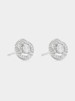 Expertly crafted in Sterling Silver, these beautiful 10mm stud earrings feature round-cut Cubic Zirconia enhanced by a swirl design sparkling with pave set stones.
