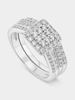 Expertly crafted in Sterling Silver, this radiant twinset ring features a square cluster of round-cut Cubic Zirconia and bands sparkling with pavé set stones.