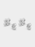 Expertly crafted in Sterling Silver, these textured clover stud earrings feature round-cut Cubic Zirconia.