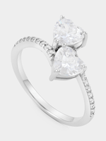 Expertly crafted in Sterling Silver, this romantic ring features a pair of heart-cut heart Cubic Zirconia and an elegantly curved band glittering with pavé set stones.