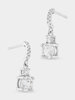 Expertly crafted in Sterling Silver, this elegant drop earrings features round-cut Created White Sapphires and bails sparkling with pavé set stones that include Earth Grown Diamonds.