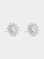 Expertly crafted in Sterling Silver, these beautiful stud earrings feature round-cut Created White Sapphires embraced by a starburst-inspired halo of round-cut stones including Earth Grown Diamonds.