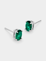 Expertly crafted in Sterling Silver, these beautiful stud earrings feature oval-cut emerald-coloured Cubic Zirconia.