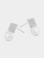 Elevate your style with these stunning sterling silver stud earrings. Featuring a cluster of sparkling CZ stones and a lustrous freshwater pearl, these earrings are perfect for adding a touch of elegance to any outfit.