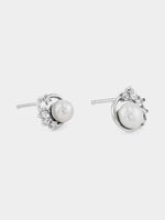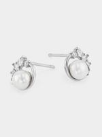 Expertly crafted in Sterling Silver, these beautiful circle stud earrings feature lustrous Freshwater Pearls accented by round-cut and marquise-cut Cubic Zirconia.