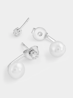Expertly crafted in Sterling Silver, these jacket stud earrings feature lustrous Freshwater Pearls and round-cut Cubic Zirconia in halo settings.