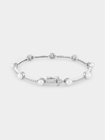 Expertly crafted in Sterling Silver, this beautiful station bracelet features lustrous Freshwater Pearls and pavé set Cubic Zirconia.
