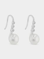 Elevate your style with these stunning sterling silver drop earrings featuring lustrous freshwater pearls surrounded by glittering cubic zirconia stones. These elegant earrings are perfect for any occasion and are sure to make a statement. Crafted with high-quality materials for a luxurious look and feel.