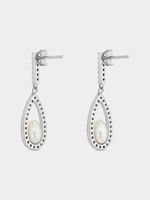 Expertly crafted in Sterling Silver, elegant open tear drop earrings feature lustrous Freshwater Pearls and catch the light with pavé set Cubic Zirconia.