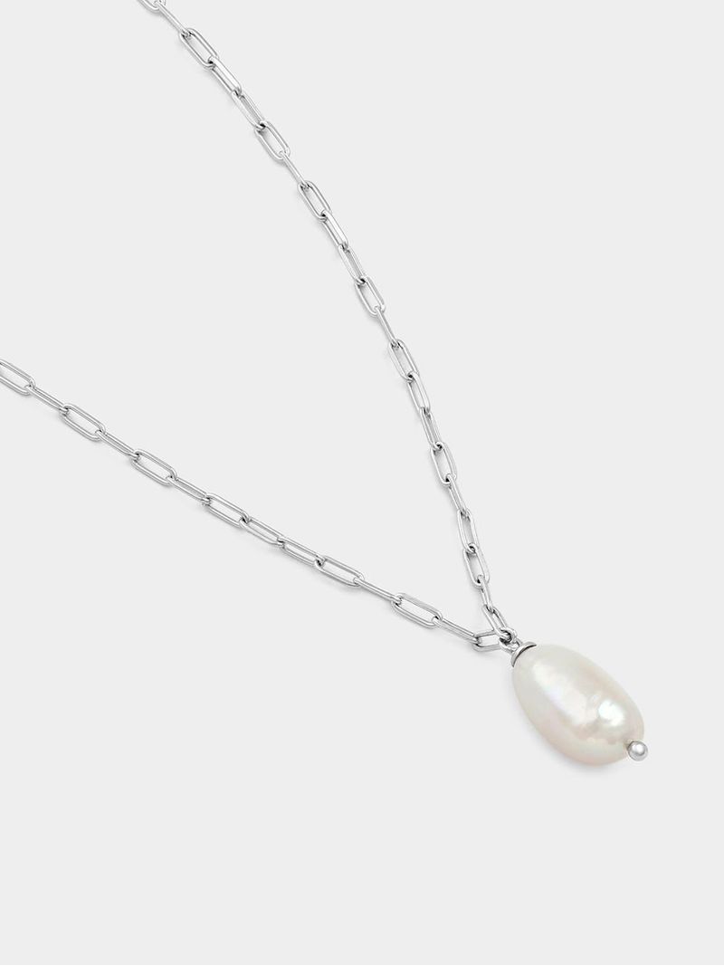 Expertly crafted in Sterling Silver, this elegant paperclip link necklace features a lustrous Freshwater Pearl.