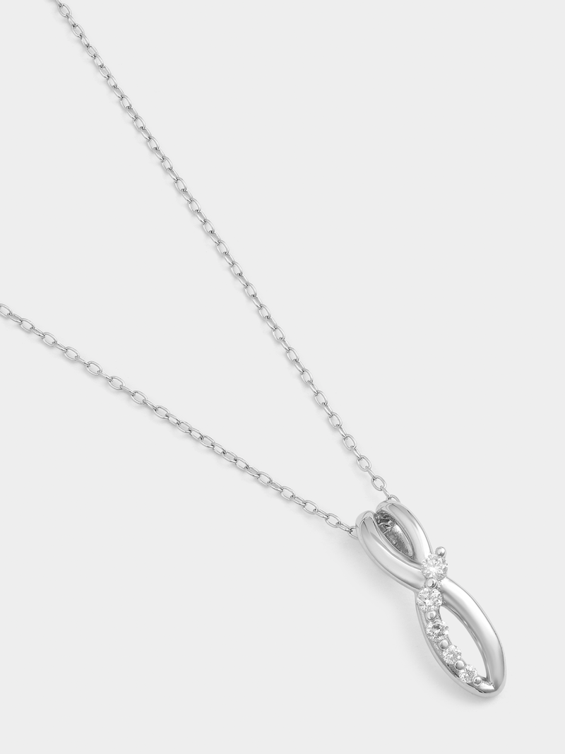 Expertly crafted in Sterling Silver, this beautiful ballet-inspired infinity pendant on a chain glitters with round-cut Lab Grown Diamonds. The total Diamond weight is 0.12 carats.