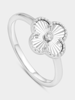 Expertly crafted in Sterling Silver, this beautiful clover ring catches the light with a round-cut Lab Grown Diamond solitaire. The total Diamond weight is 0.015 carats.