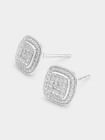 Expertly crafted in Sterling Silver, these beautiful stud earrings feature cushion-shaped clusters of round-cut Lab Grown Diamonds in halo settings. The total Diamond weight is 0.03 carats.