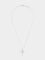 Expertly crafted in Sterling Silver, this beautiful cross pendant on chain features a heart design enhanced by a round-cut Lab Grown Diamond solitaire.