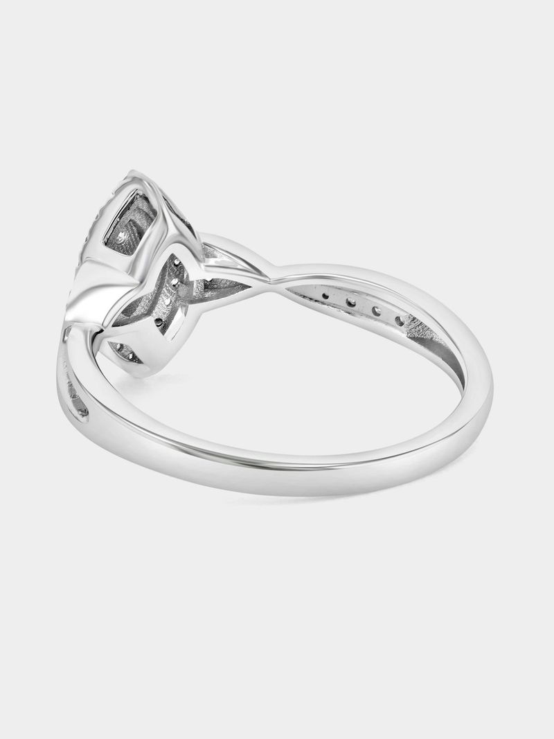 Expertly crafted in Sterling Silver, this alluring ring features a marquise-shaped cluster of round-cut Lab Grown Diamonds and an elegantly twisted band sparkling with pavé set stones.