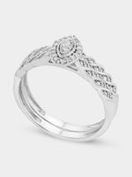 Expertly crafted in Sterling Silver, this opulent twinset ring features a marquise-shaped cluster of single-cut Lab Grown Diamonds in a halo setting and elegantly twisted bands enhanced by intricate beading.